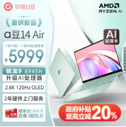 从个人助理到办公协作,从创意工具到深度创作,AI PC不仅为我们提供了高效处理复杂AI任务的硬件支持,也带来了更个性化的创作体验。华硕a豆14 Air作为一款备受好评的AI PC,不仅外观时尚亮眼,还内置AMD锐龙9 8945H处理器、豆叮AI助手,配置高能并带来高效AI体验,是年轻人购机优选。现在入手不仅支持白条3期免息+晒单返百元E卡,还可参与华硕以旧换新活动,政府补贴福利满满,天津浙江四川等多个地区用户最高立减20%,到手更值。